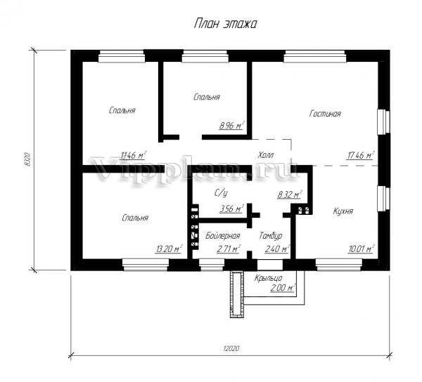 | Размеры дома: | 12.02м×8.32м |